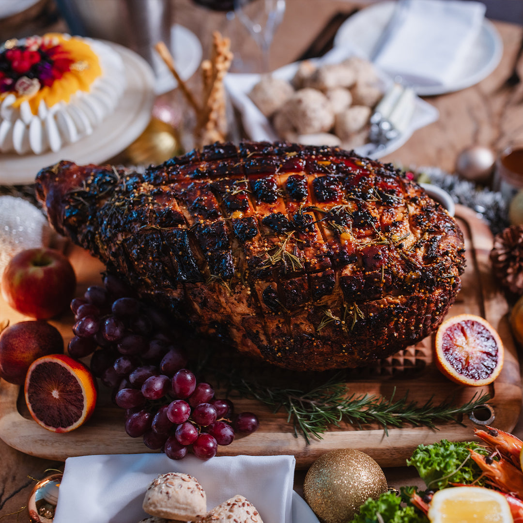 Honey + mustard glazed leg ham on the bone (df, gf)